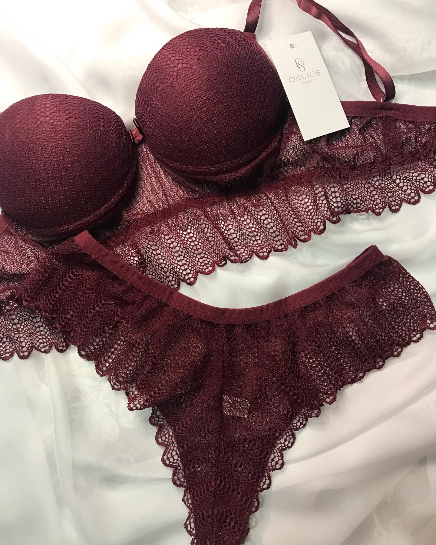 | Alças reguláveis | Calcinha fio duplo de renda |