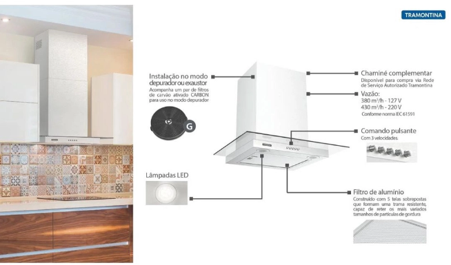 COIFA INOX/VIDRO BASIC 60 220V TRAMONTINA