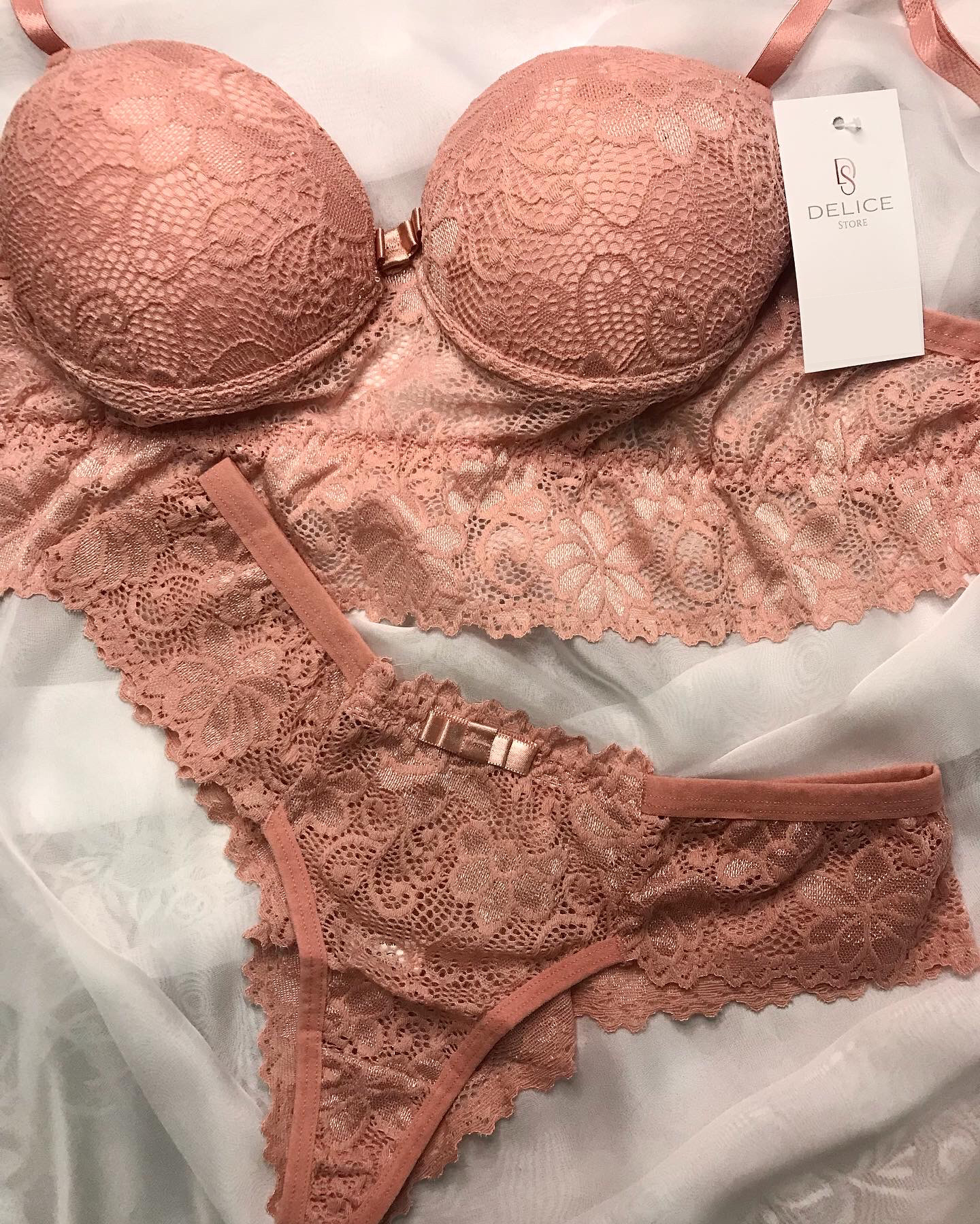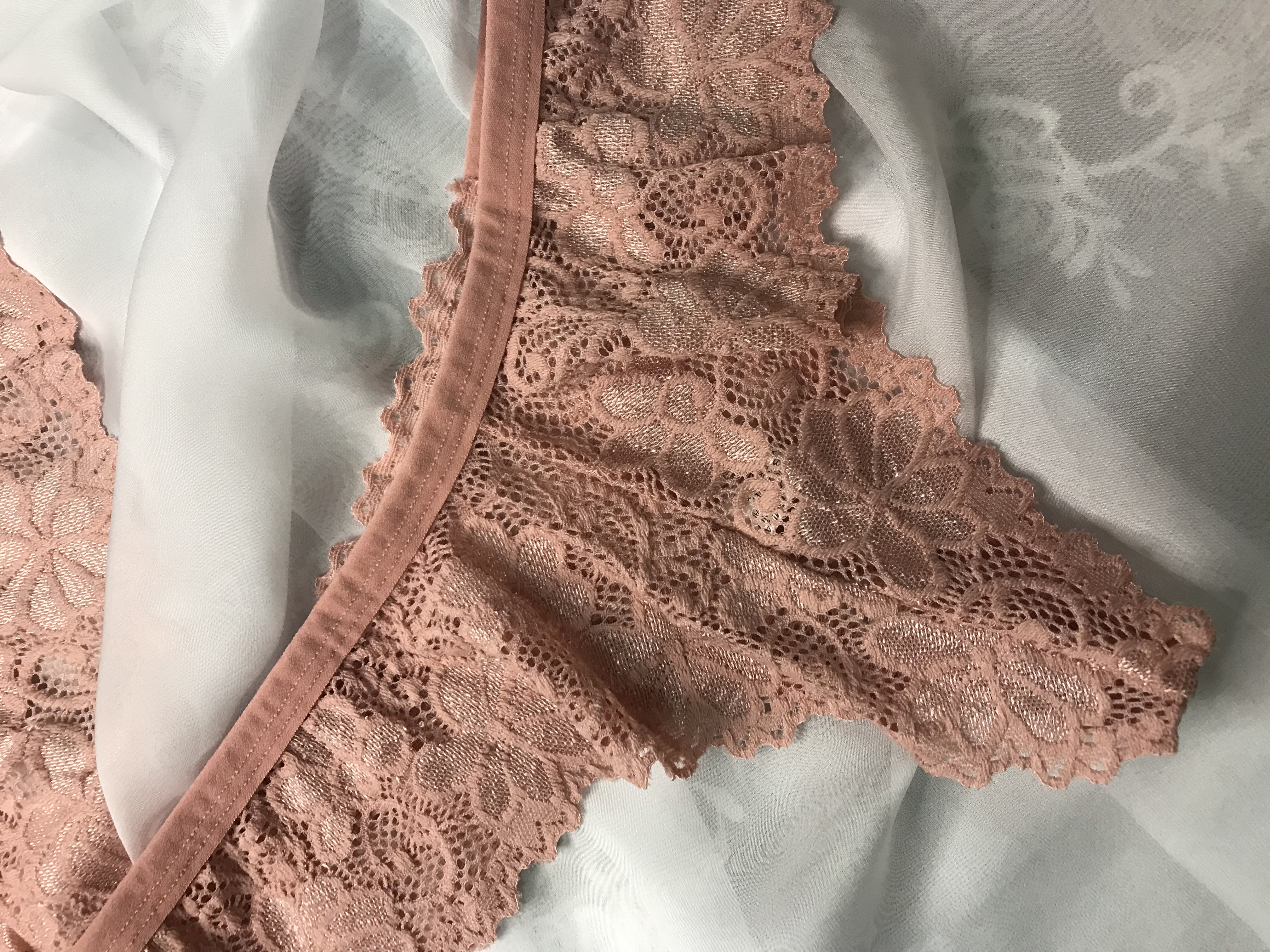 | Calcinha modelo fio duplo toda em renda | Cor: Rosê |