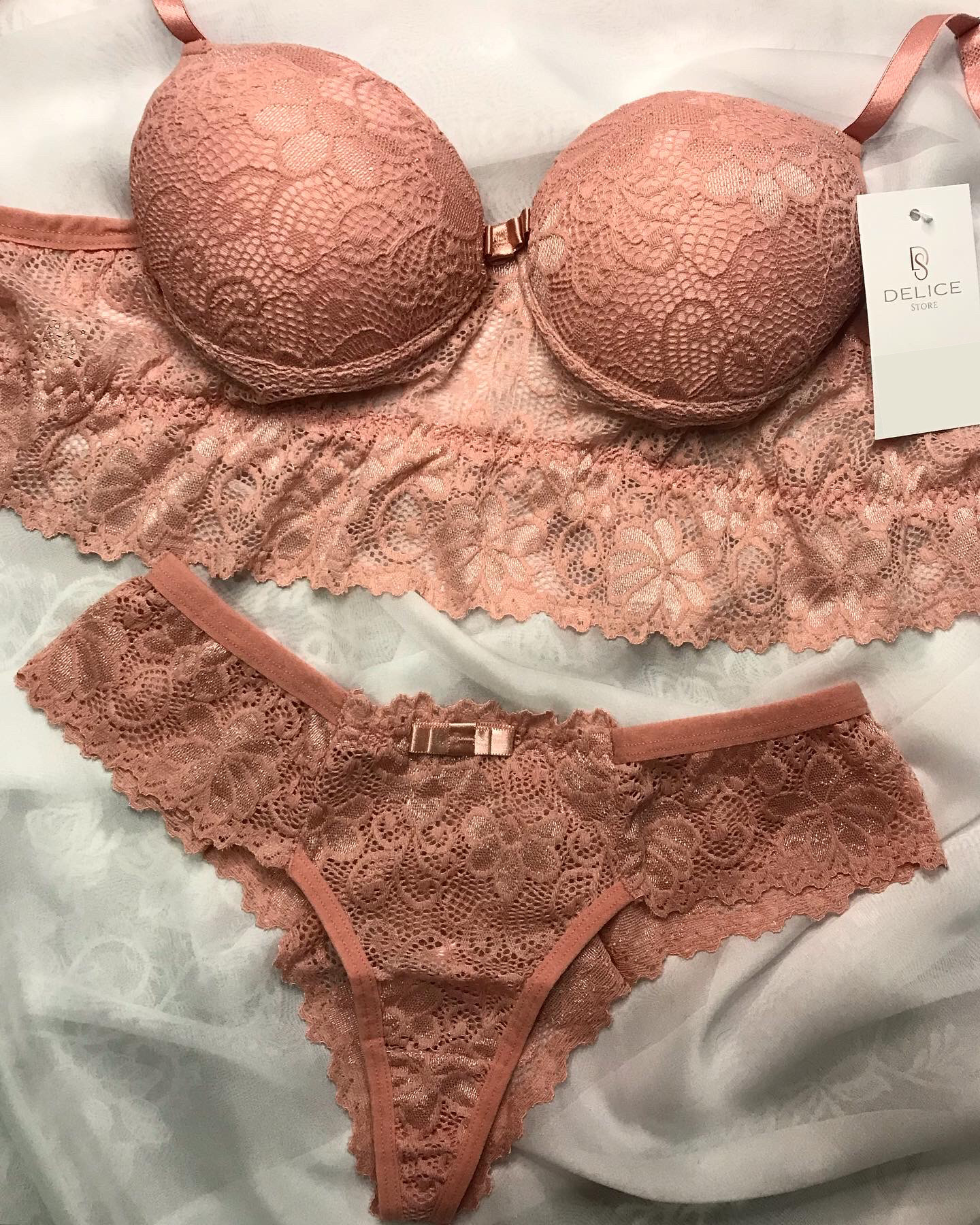 | Tecido: Renda | Sutiã modelo cropped com alças reguláveis e fecho duplo |